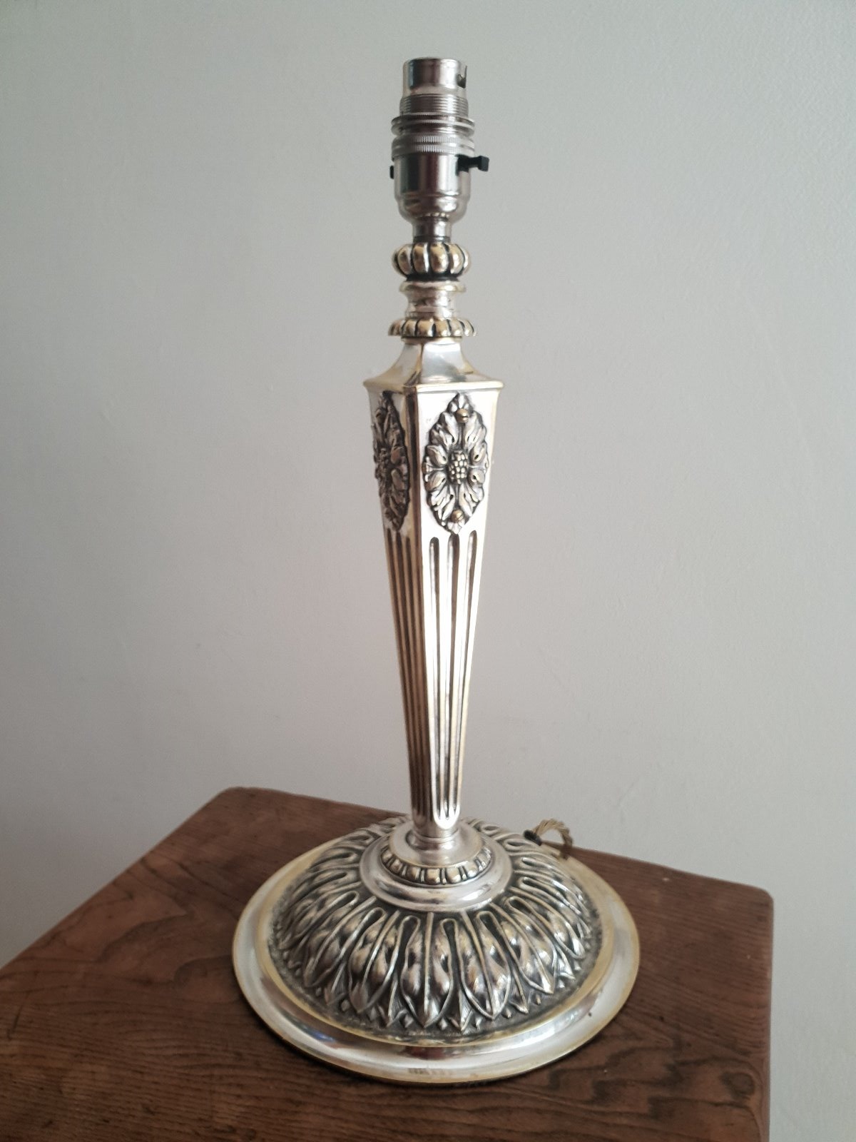 Partially Distressed Silver Plated Brass Table Lamp Base; Rewired & Pat Tested c.1910