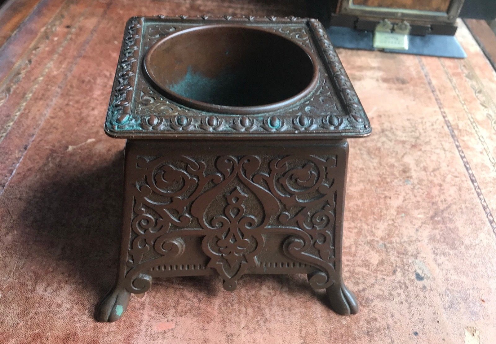 Patinated Bronze Brass Font, Desk, Brush Pot Arts & Crafts
