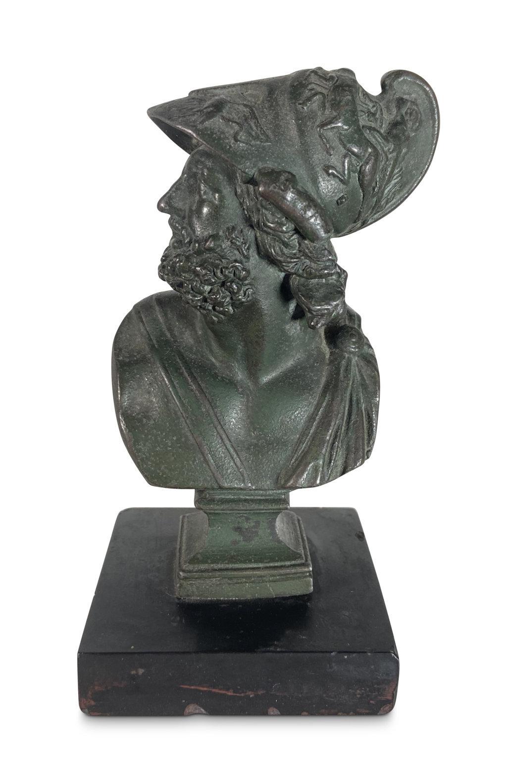 Patinated Spelter Classical Bust Mounted on a Marble Base