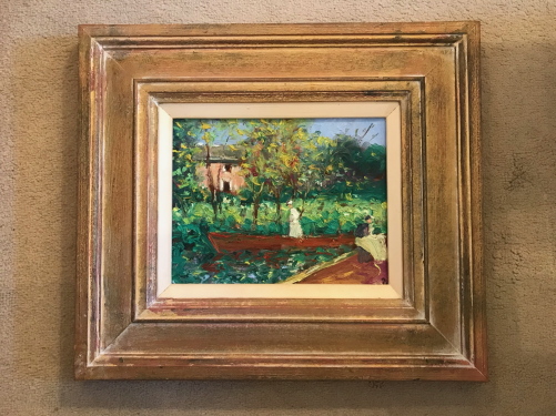 Paul Beauvais - Oil on Board - Figures in Boat & Cottage Beyond (1 of 1)