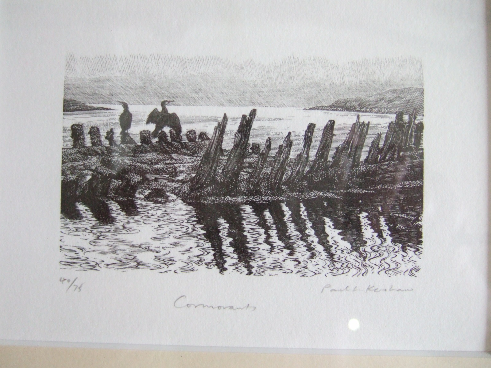 Paul L Kershaw - Wood Engraving Entitled "Cormorants"
