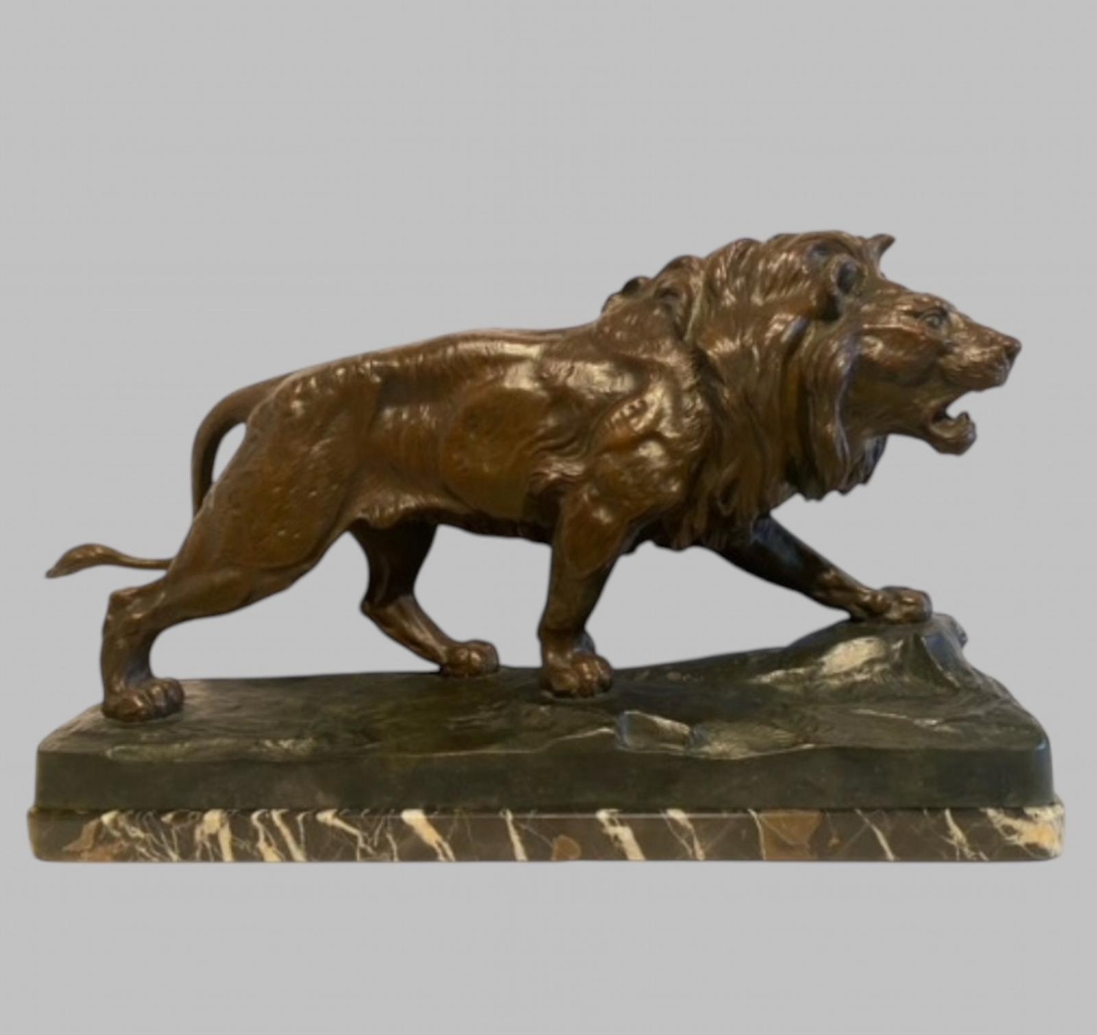 Paul Thomas - 'Lion Aux Aguets' - Large Patinated Bronze Lion (1 of 4)