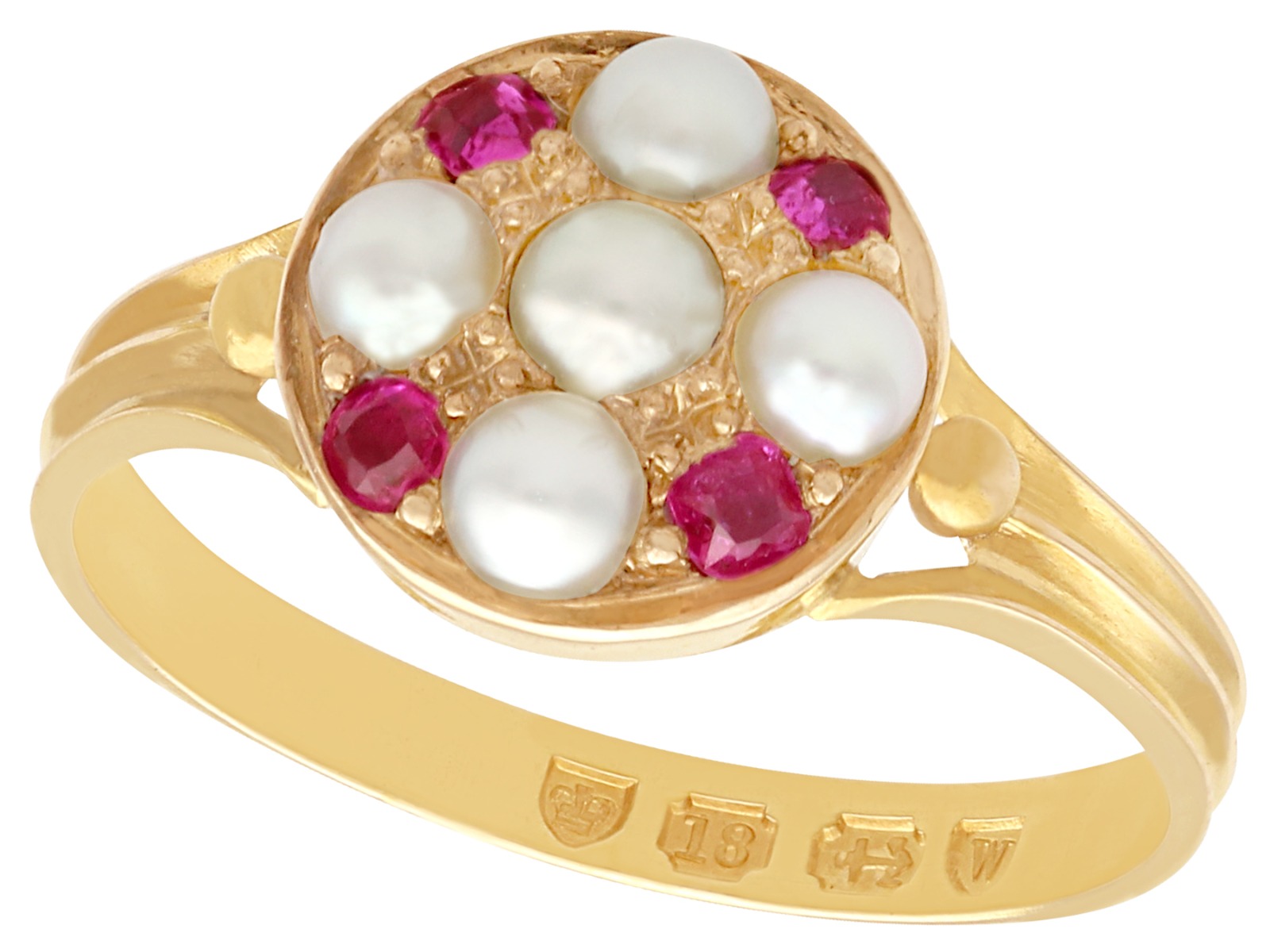 Pearl & 0.16ct Ruby, 18ct Yellow Gold Dress Ring - Antique 1871 (1 of 9)