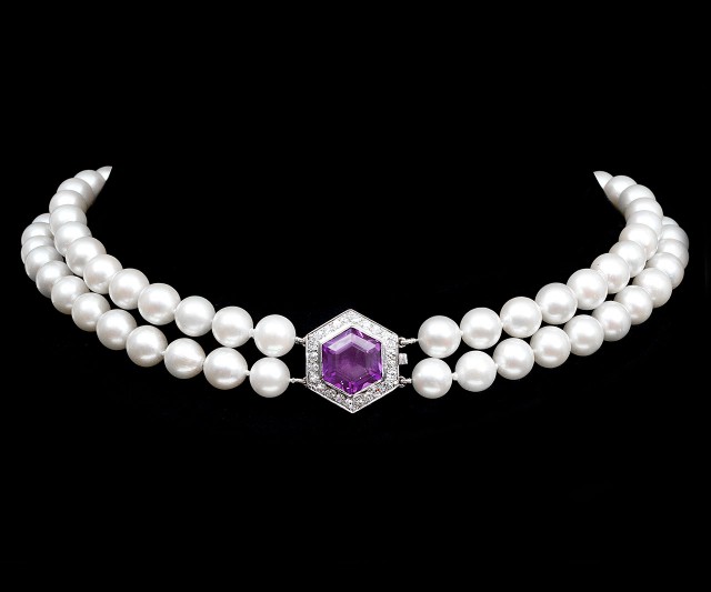Pearl Choker with Amethyst & Diamond Clasp c.1920s
