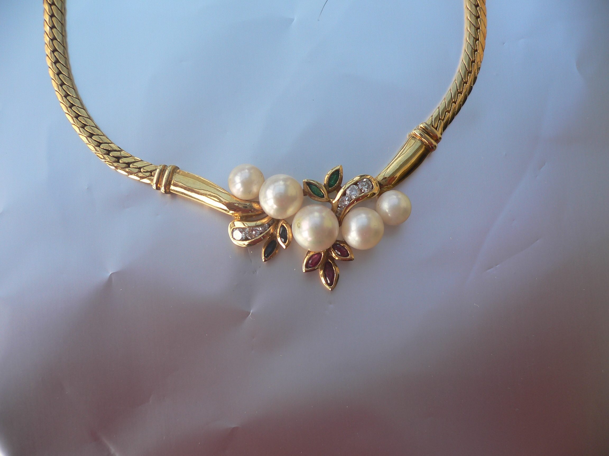 Pearl, Emerald, Sapphire and Ruby Necklace