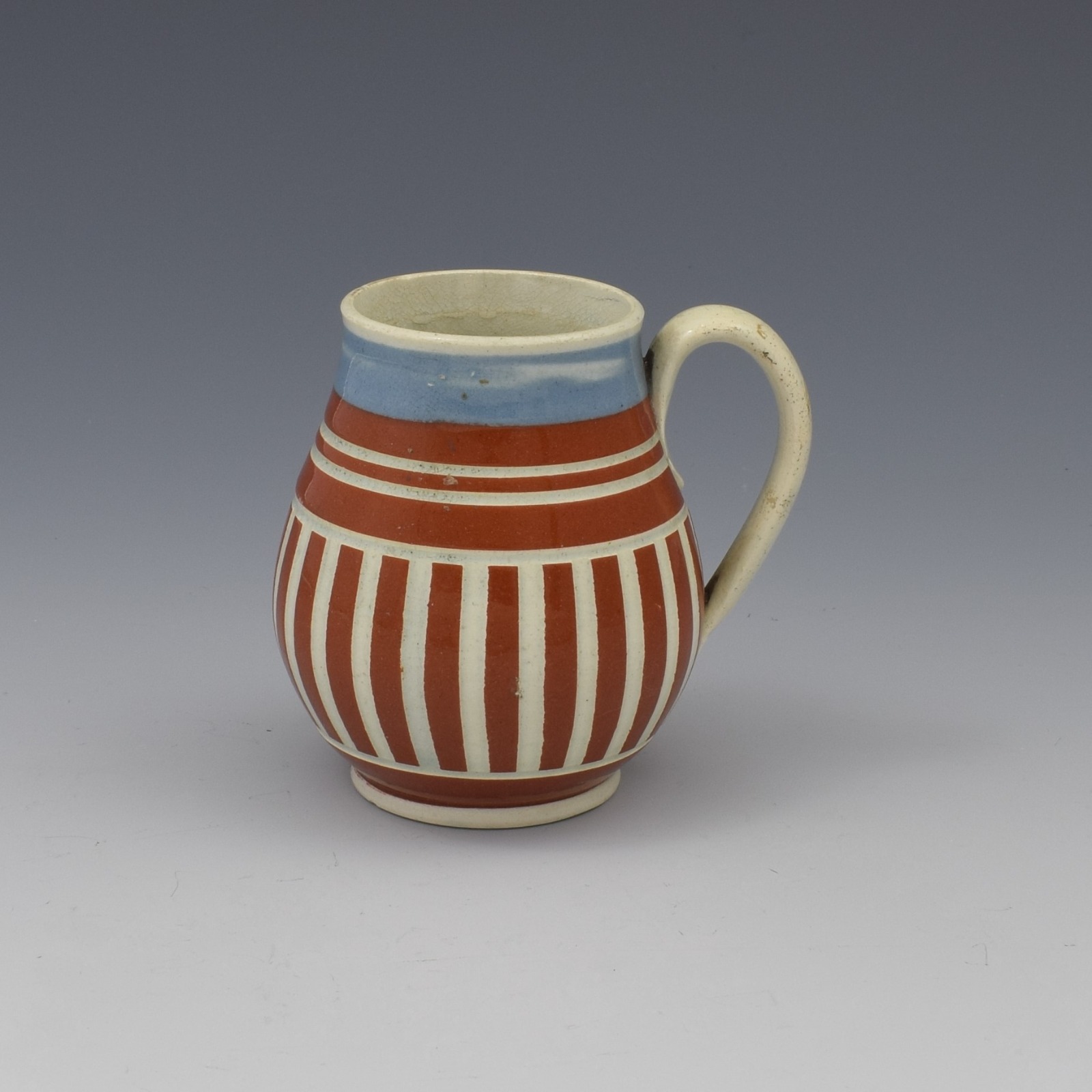 Pearlware Mocha Ware Geometric Striped Mustard Pot c.1820