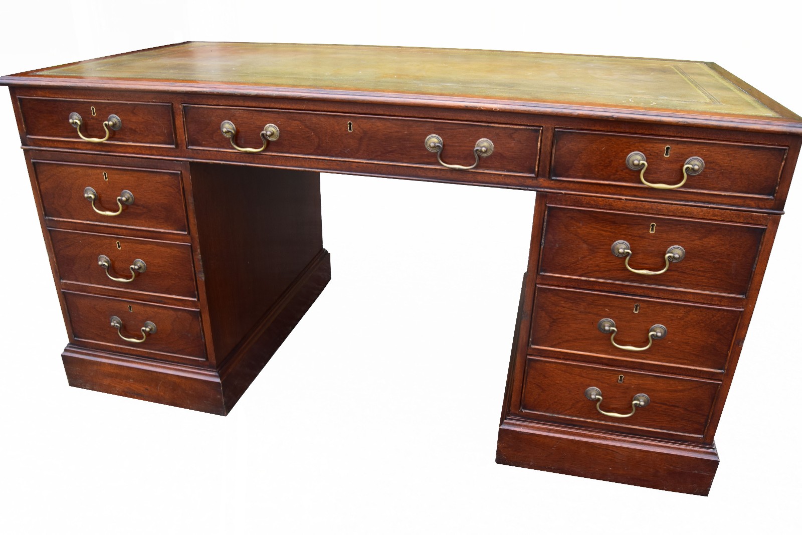 Pedestal Mahogany Partners Desk Hide Leather 5ft