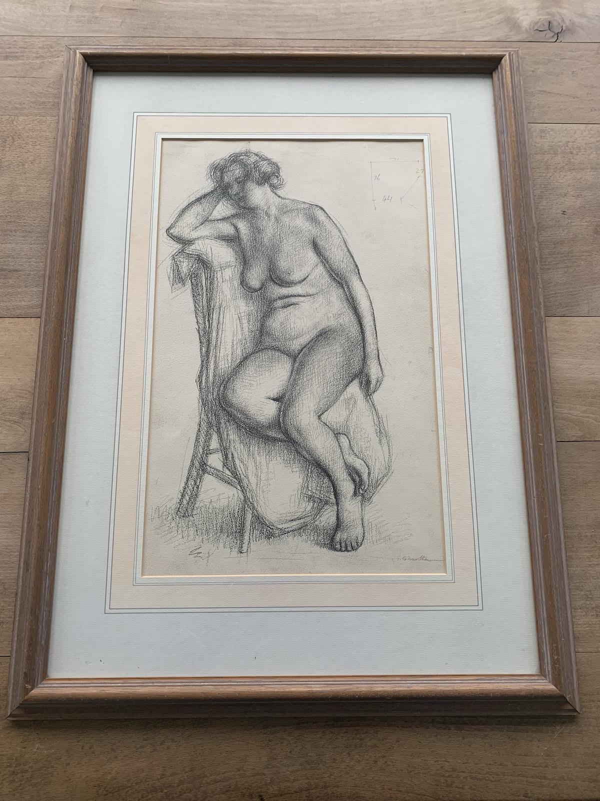 Pencil Drawing of a Seated Female Nude by George Charlton Neac 1899-1979