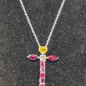 Pendentif Crois Saphir Jaune Diamants & Rubis