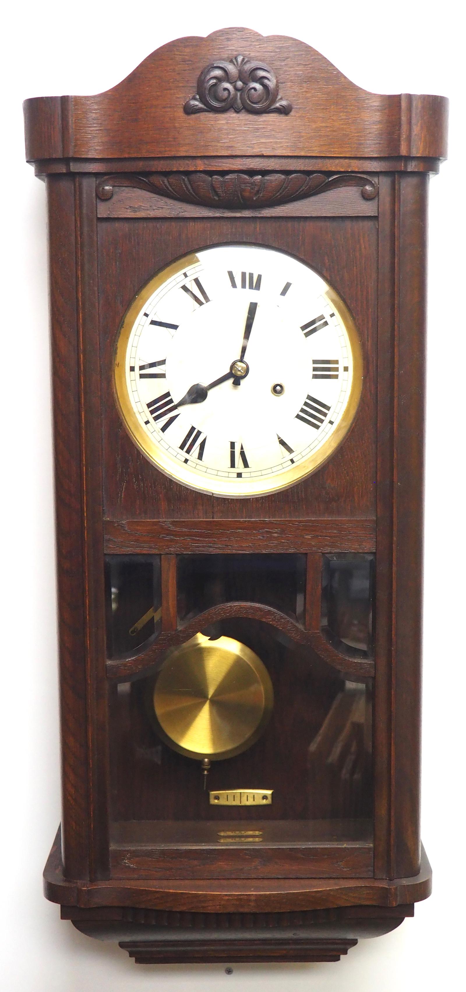 Perfect Art Deco Musical Westminster Chime Wall Clock 8-day Solid Oak with Bevelled Glass Panels