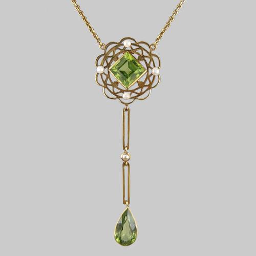 Peridot and Pearl Necklace 15ct Gold Antique Pendant Edwardian Necklace Circa1905