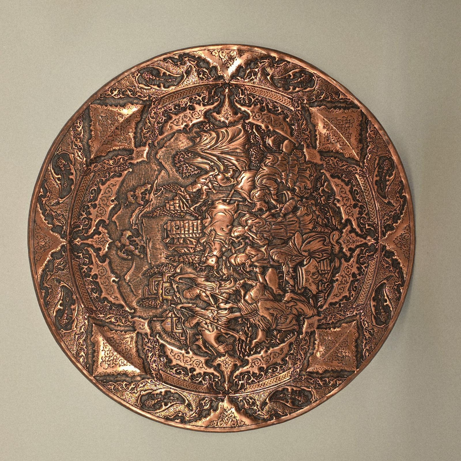 Persian Empire Copper Charger Decorated with Engraved Repousse Work c.1890