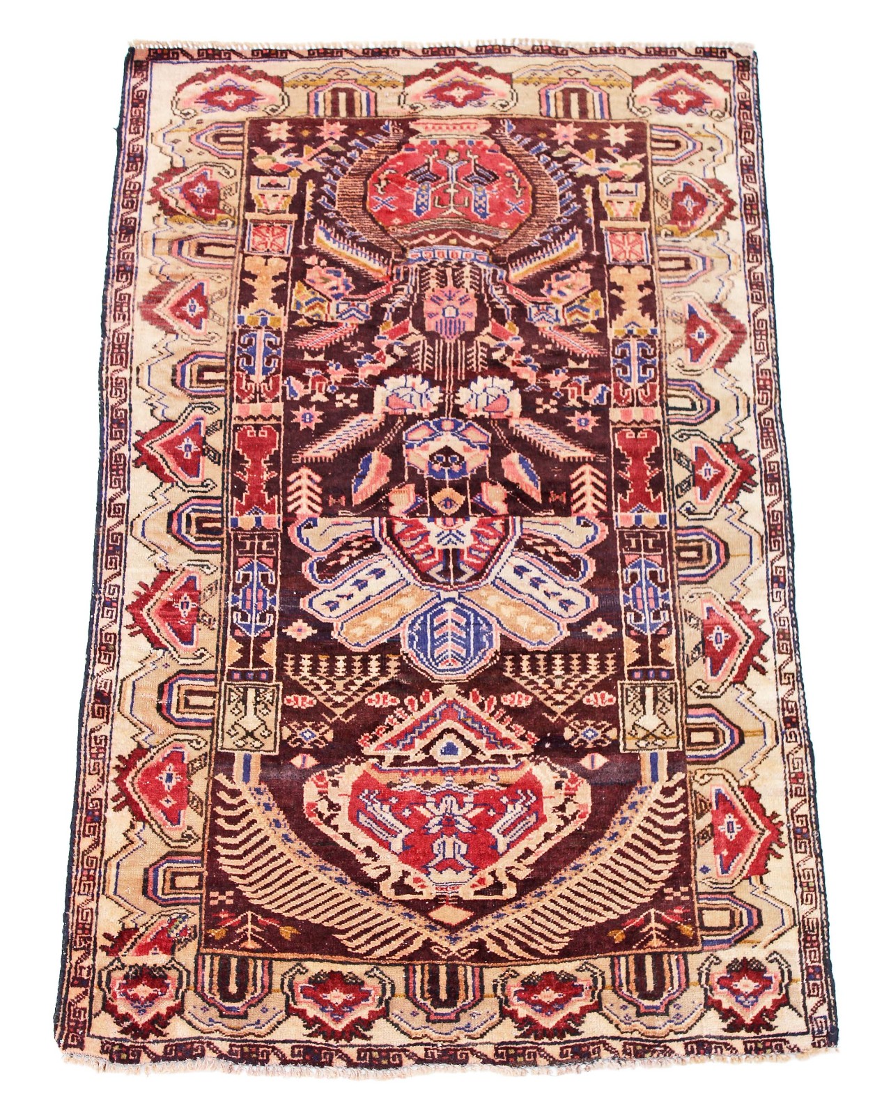 Persian Hand Woven Wool Rug Carpet Brown & Cream c.1920 (5" x 3")