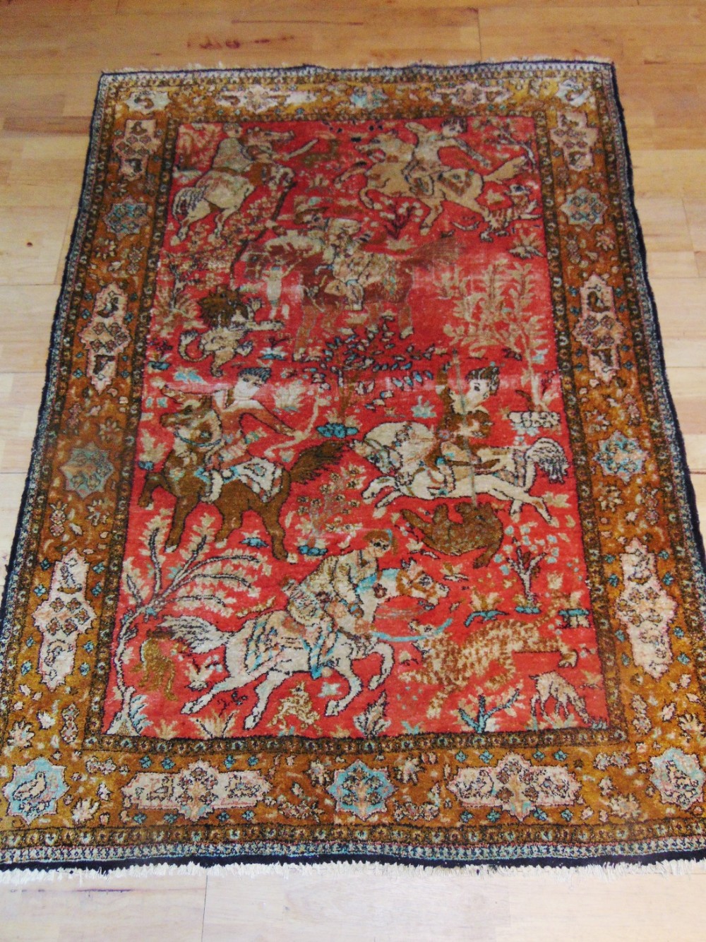 Persian Silk Hand Woven Ghom Hunting Rug (1 of 6)