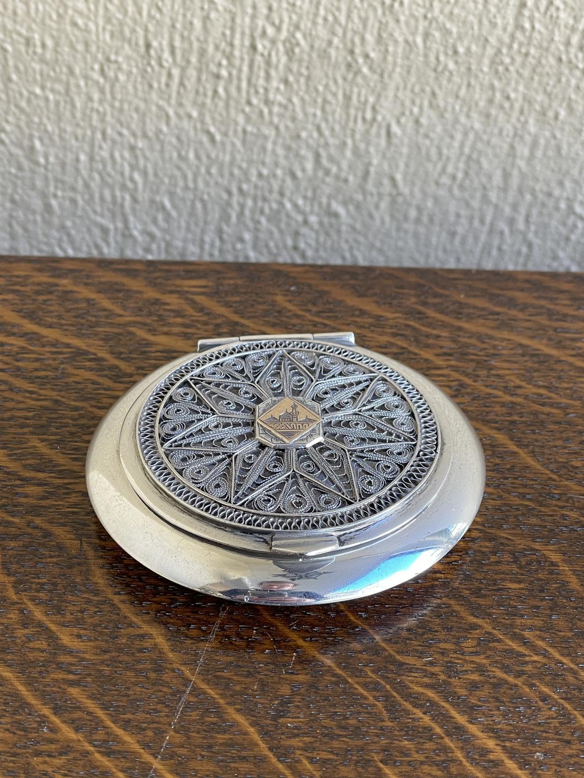 Persian Silver Powder Compact Filigree Lid