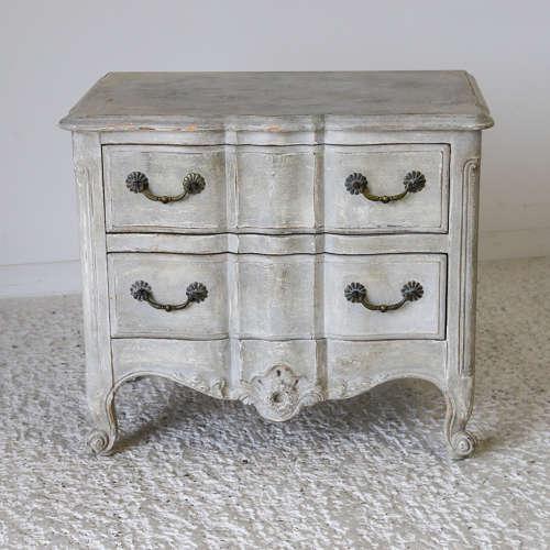 Petite French Mid Century 2 Drawer Serpentine Commode Grey Paint