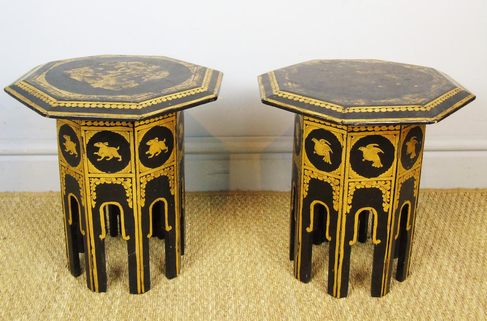 Petite Pair of Antique Gilt and Black Lacquer Syrian Tables