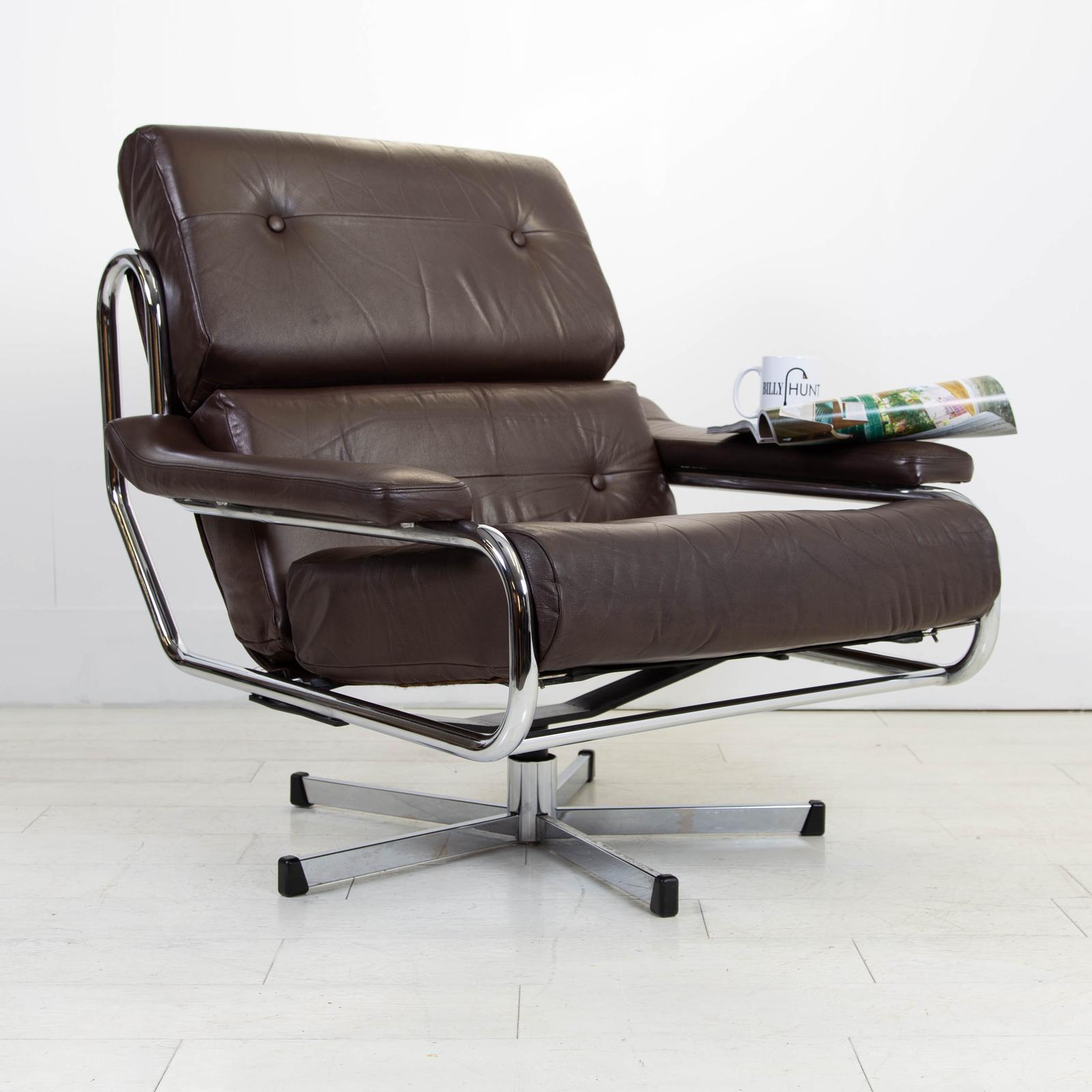 Pieff Mid Century Leather Swivel Alpha Armchair