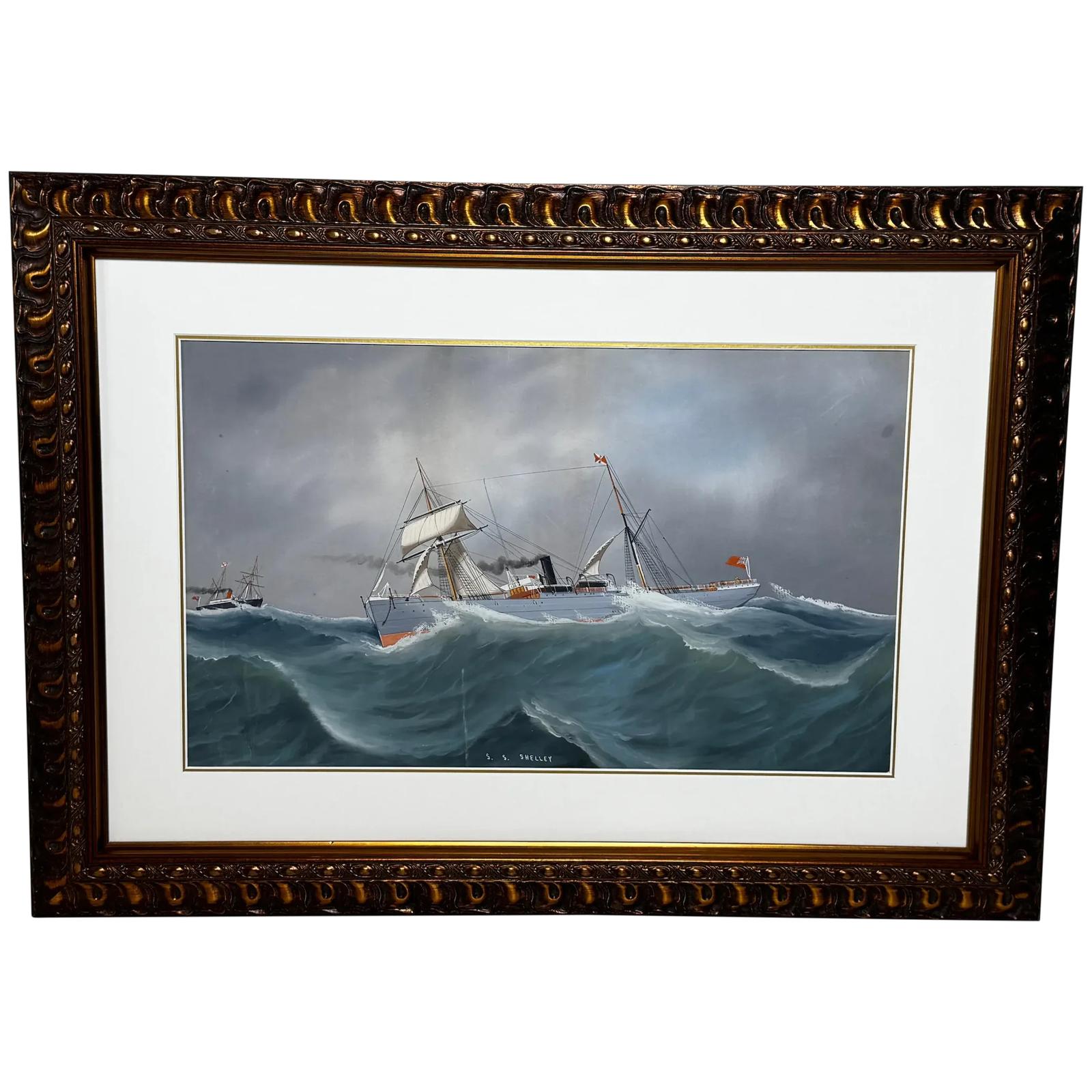 Pierhead Painting S.S. Shelley in Heavy Seas — Attributed to Lucas Papaluca (1890–1934)