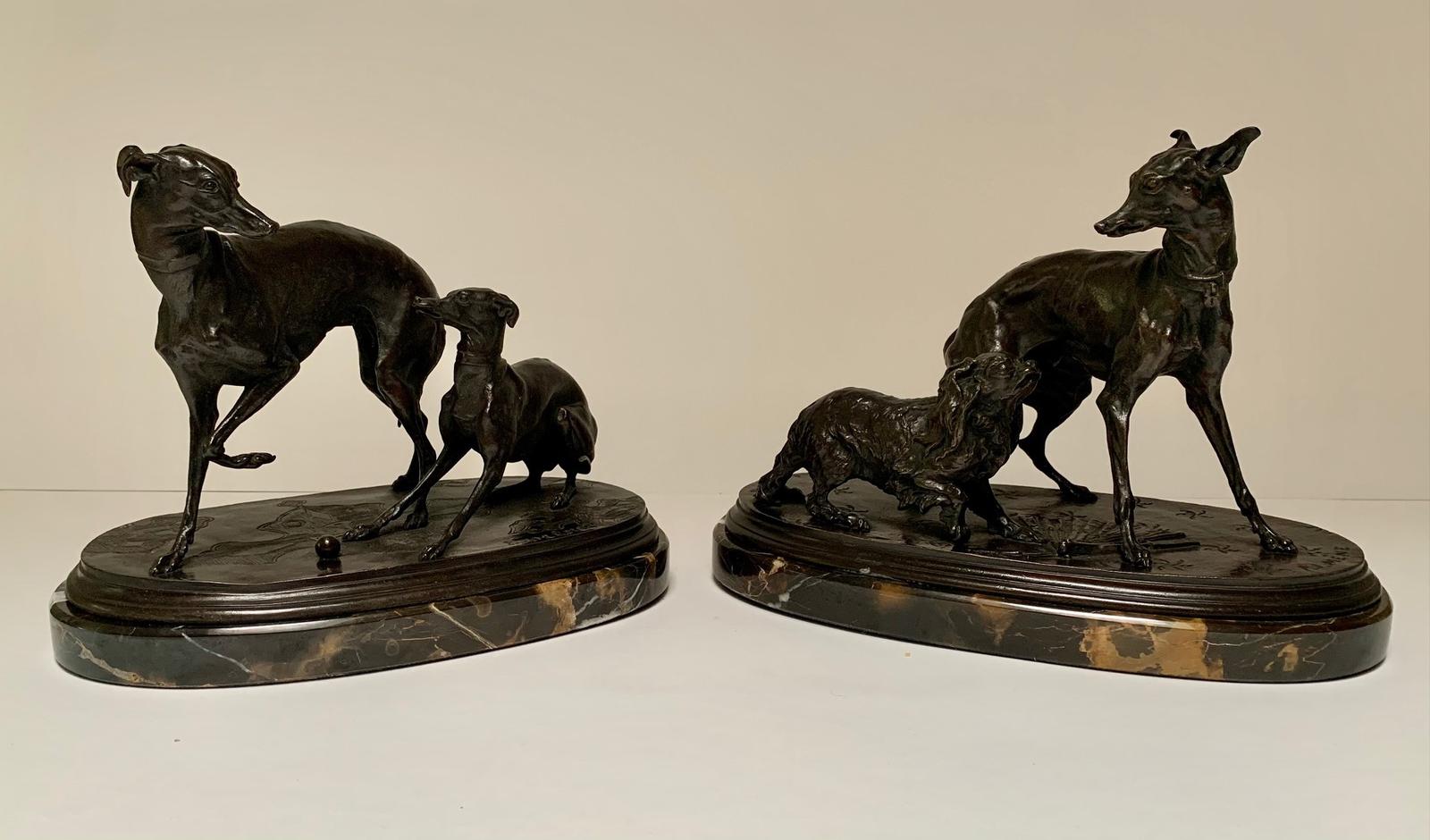 Pierre Jules Mene - Bronze Pair of Whippet, Greyhound & Spaniel (1 of 6)