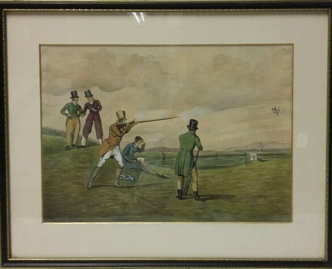 'Pigeon Shoot' a 19th Century Sporting Watercolour Painting Signed J.Compton c.1890