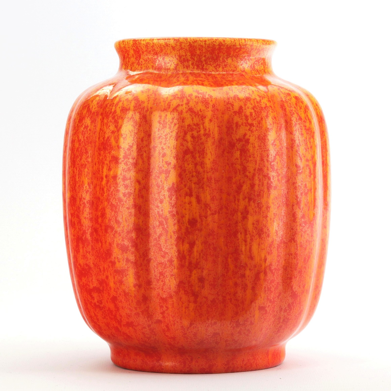 Pilkington’S Royal Lancastrian Art Deco Orange-Vermilion Fluted Vase C.1935 (1 of 1)
