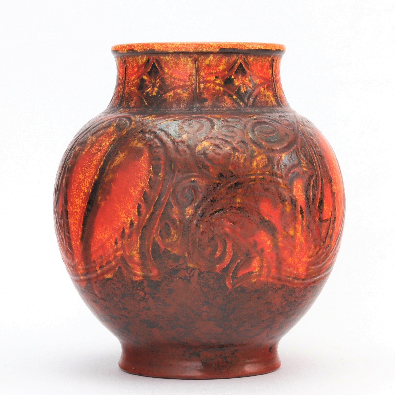 Pilkington’s Royal Lancastrian Orange-Vermilion Decorated Vase by WS Mycock 1931 (1 of 9)