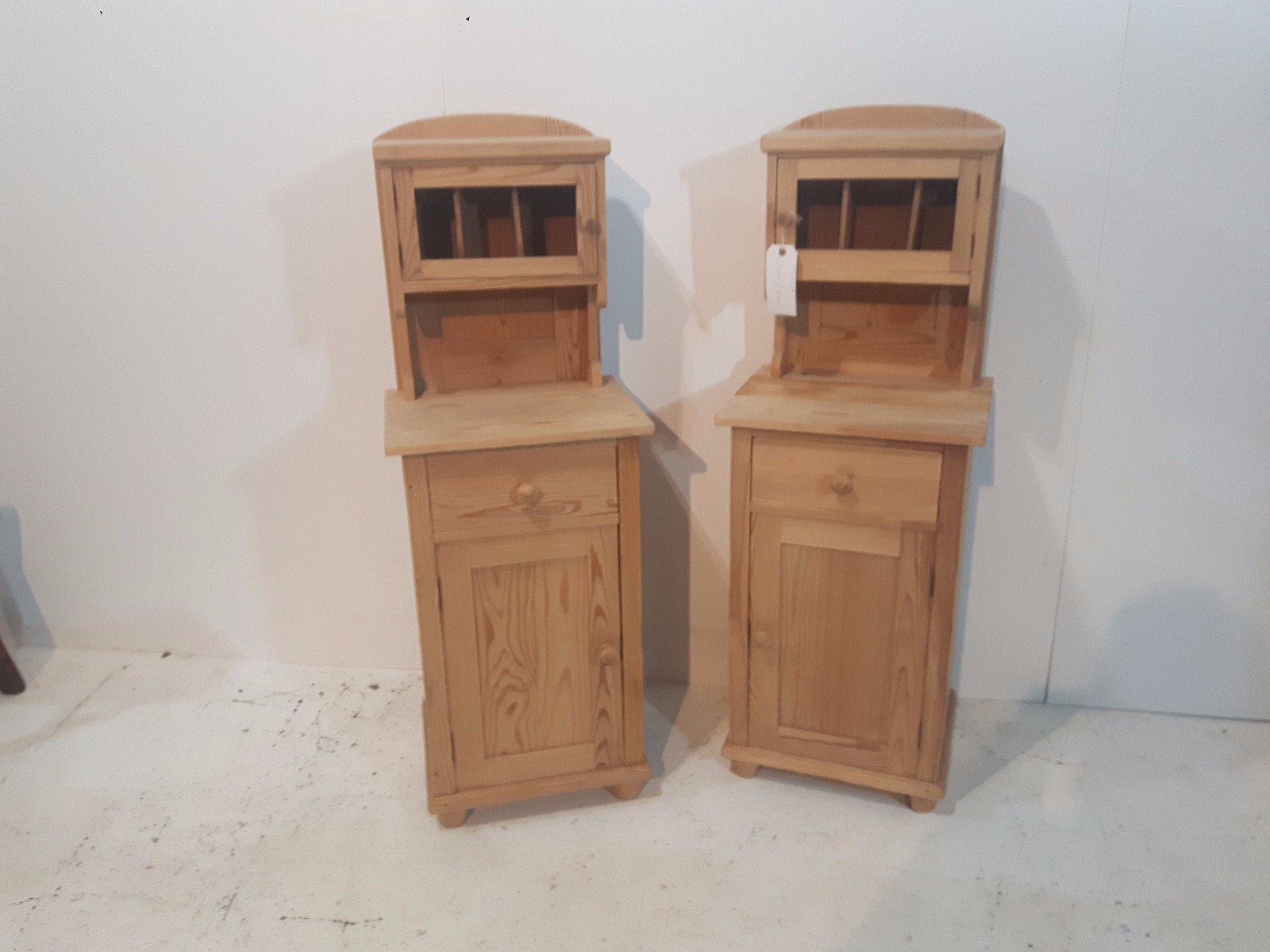 Pine Bedside Cupboards with Cubby Hole Tops c.1920