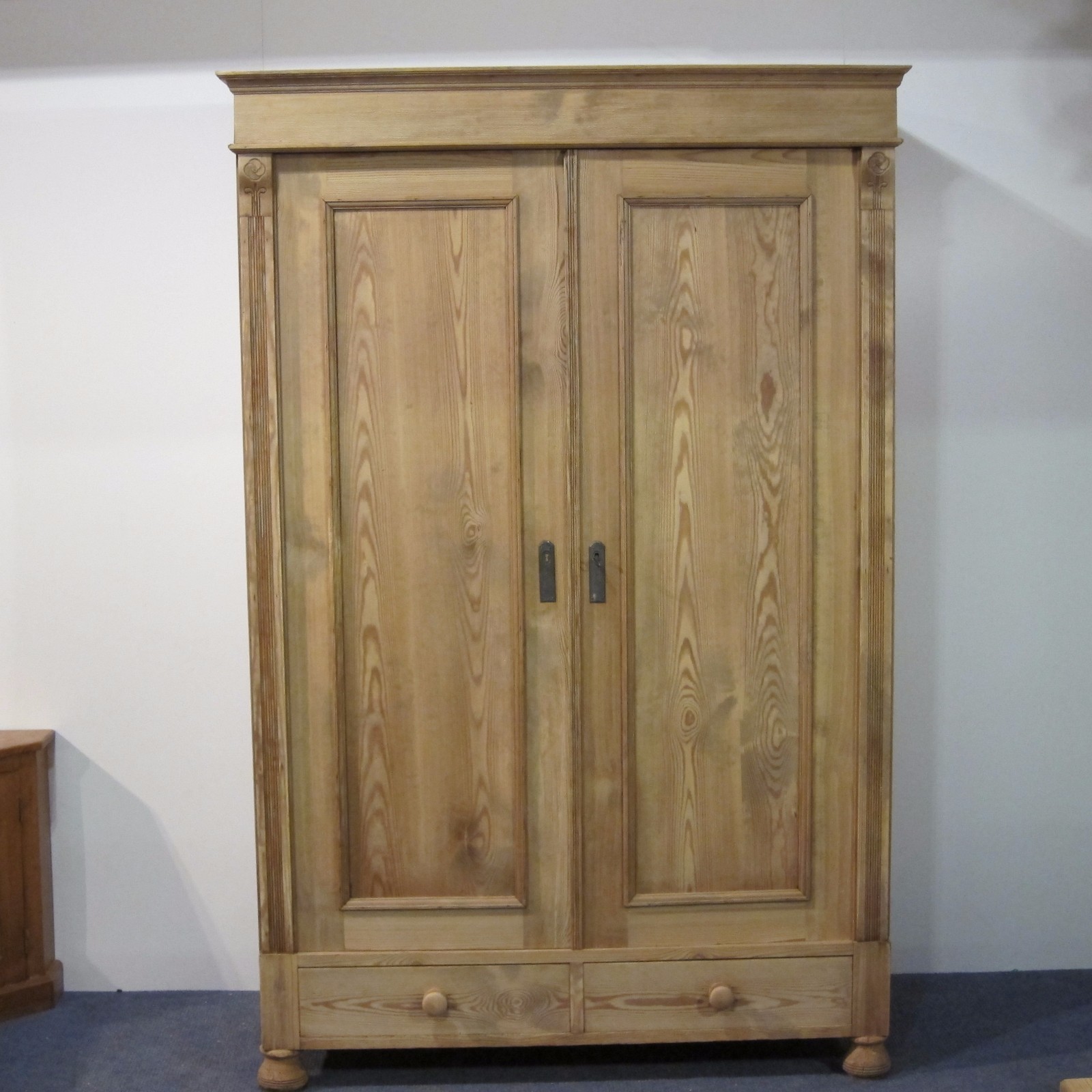 Pine Double Wardrobe with Drawers c.1920