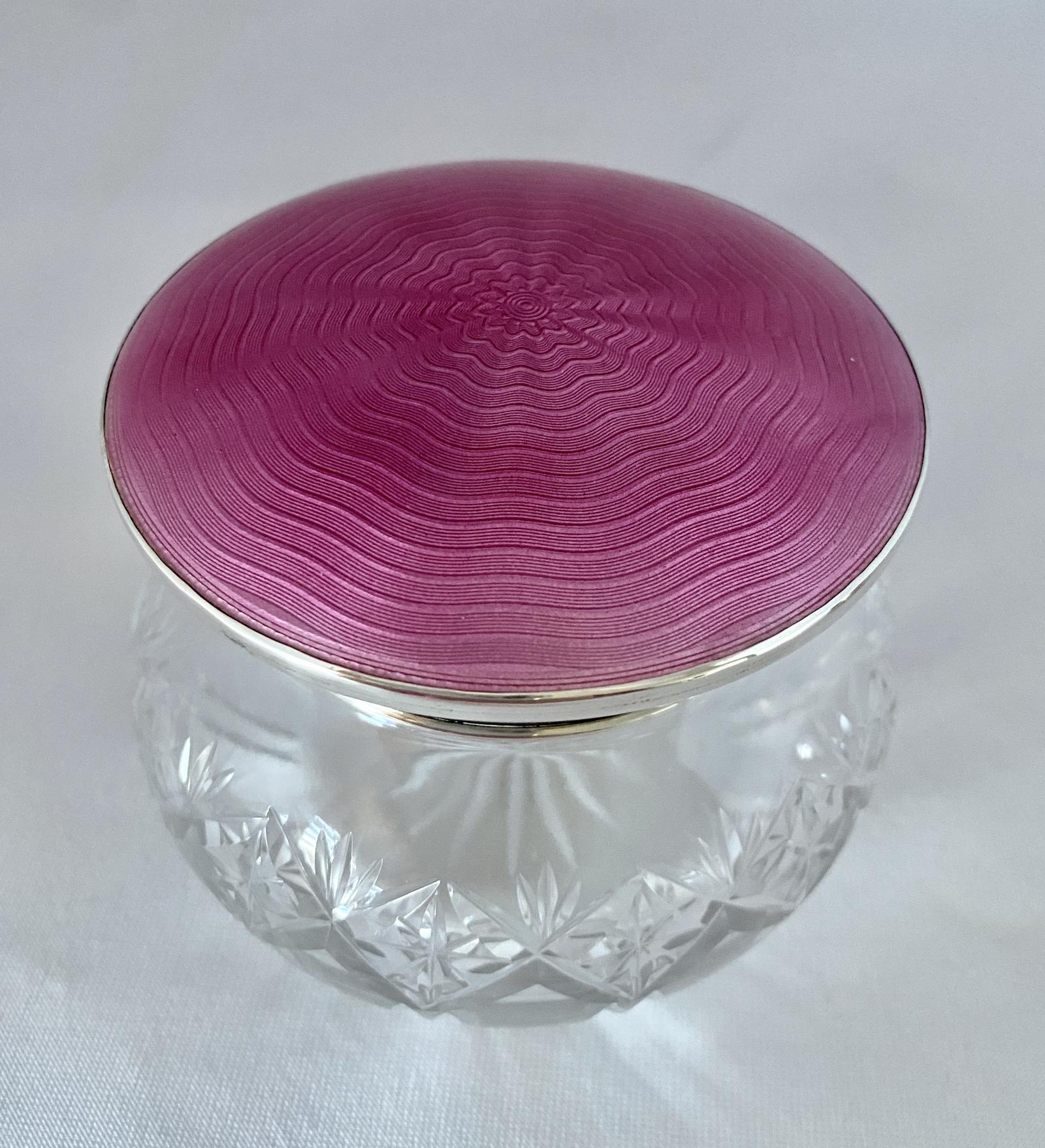 Pink Guilloche Enamel on Silver Lidded Bowl - Birmingham 1924