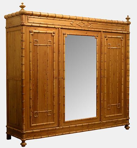 Pitch Pine & Faux Bamboo Triple Wardrobe