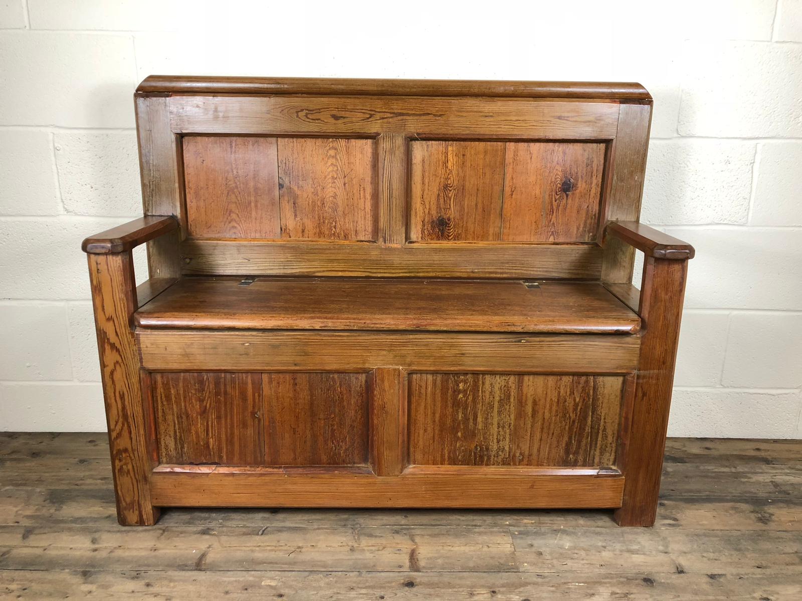 Pitch Pine Settle Bench with Under Seat Storage (1 of 1)