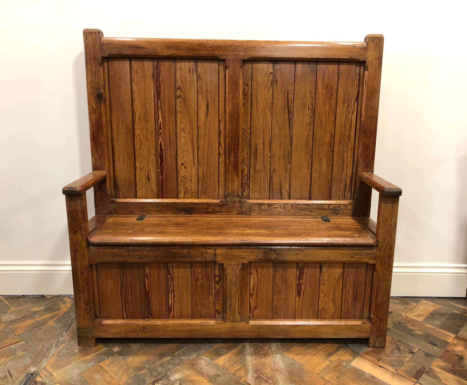 Pitch Pine Settle / Pew / Monks Bench with Under Seat Storage (1 of 1)
