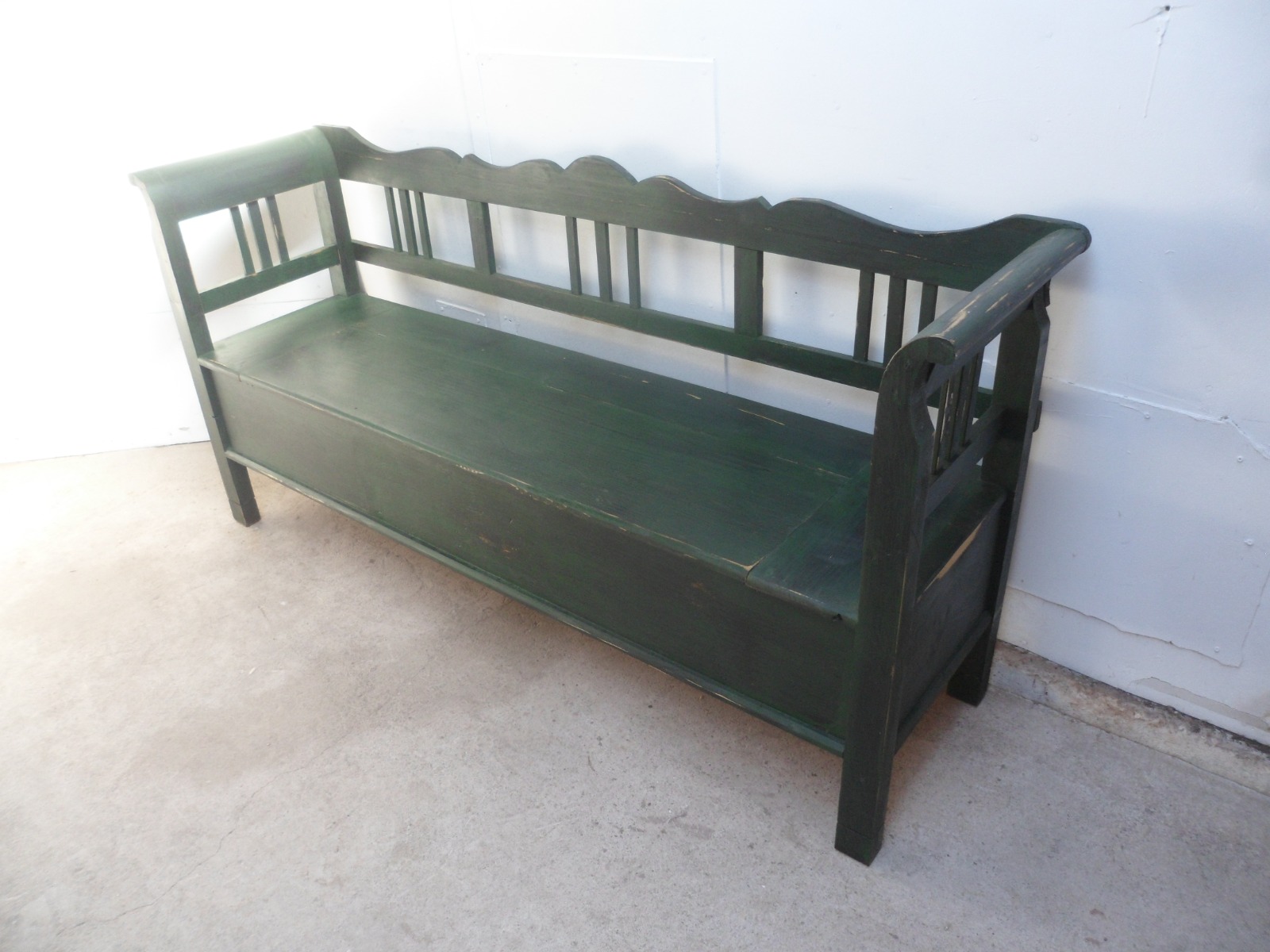Plain Shabby Chic Old Pine Emerald Green 3 Seater Box / Settle / Bench