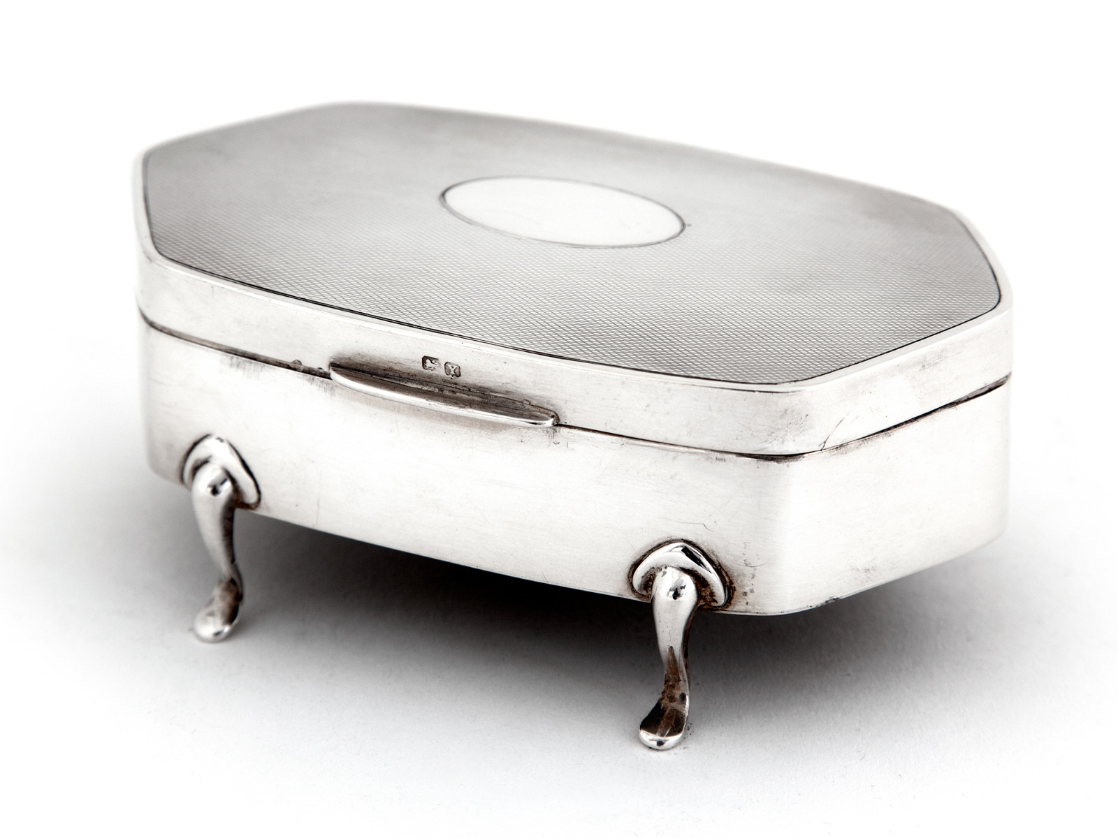 Plain Silver Body Jewellery Box with Engine Turned Pattern & Cartouche on the Hinged Lid (1 of 6)