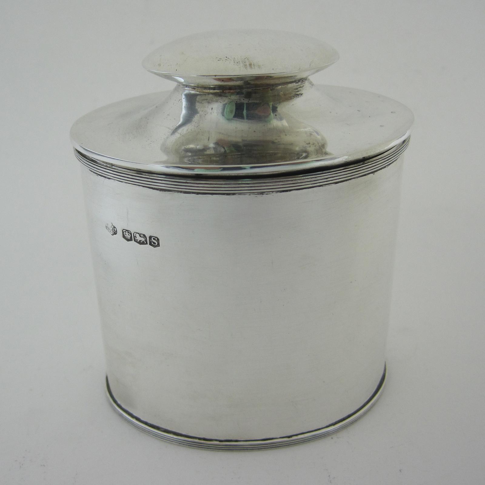 Plain Silver Oval Tea Caddy with Matching Caddy Spoon