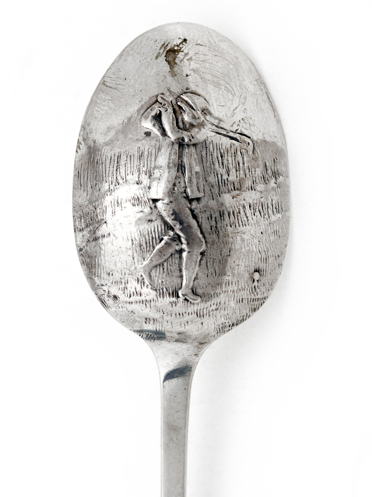 Plain Silver Tea Spoon with a Golfing Scene on the Reverse (1 of 3)