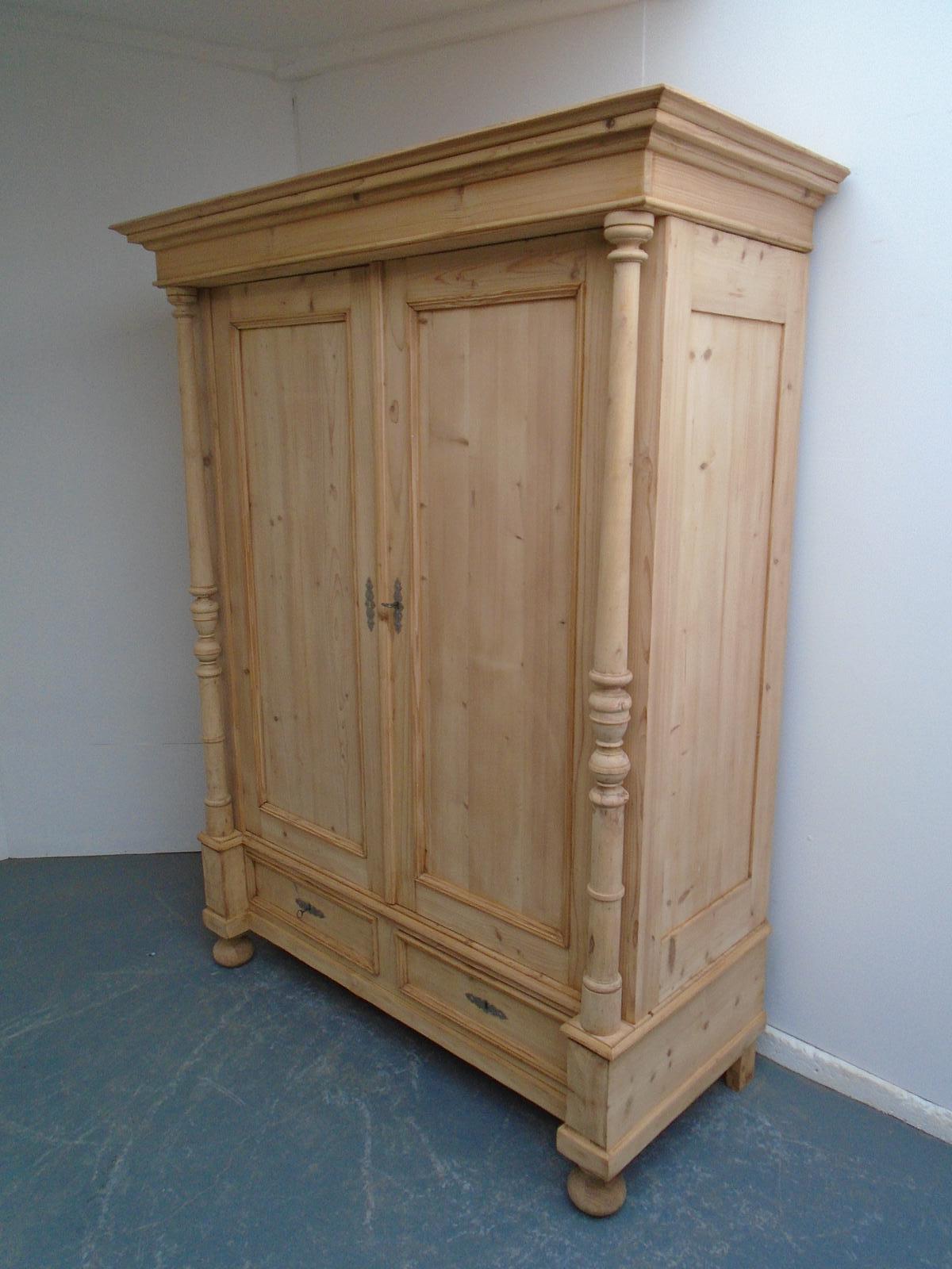 Plain Victorian Columned Antique Pine Linen Knockdown Wardrobe to wax / paint