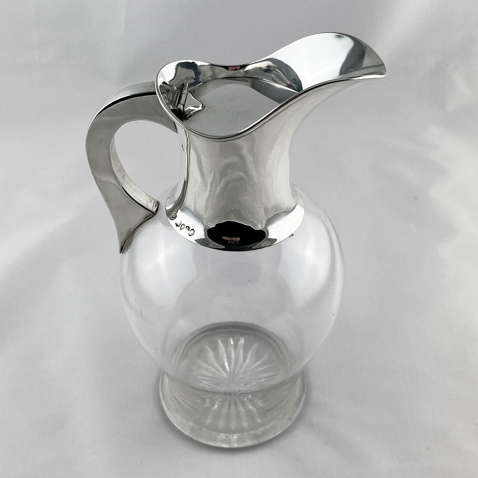 Plain Victorian Sterling Silver & Clear Glass Claret Jug