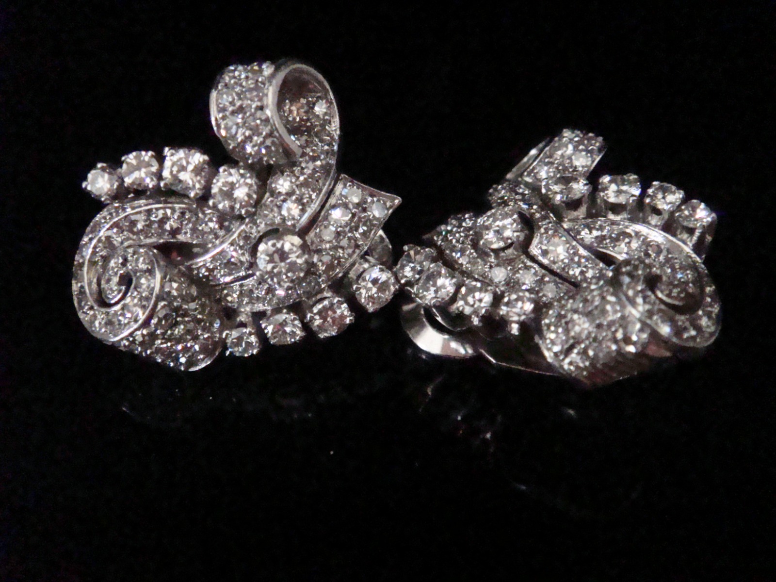 Platinum 1920s Art Deco Diamond Ear Clips 3.40ct