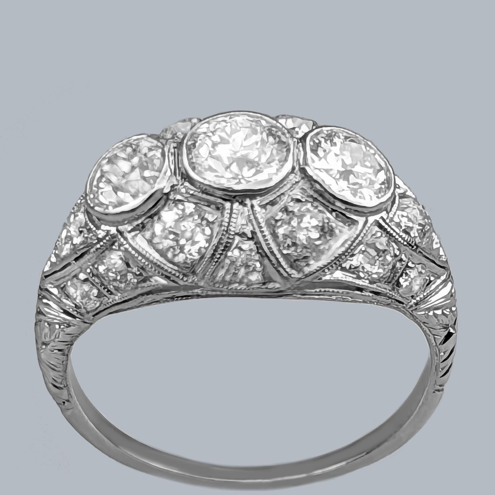 Platinum Diamond Bombé Ring Art Deco Old Cut Diamond Cluster Ring Original 1920s 3ct Diamond Ring