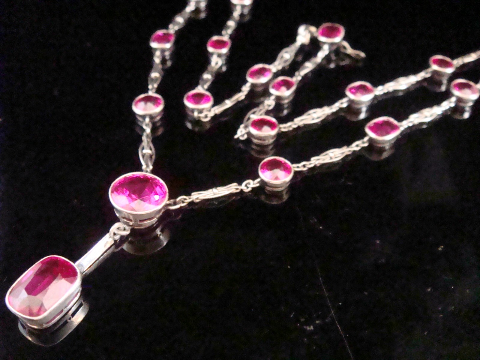 Platinum Handmade Synthetic Ruby Lavaliere Necklace c.1920