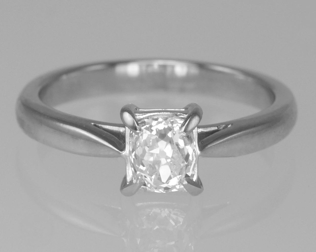 Platinum Old Mine Cut Diamond Solitaire Ring Single Stone 0.80ct Old Cushion Cut Diamond Ring (1 of 1)