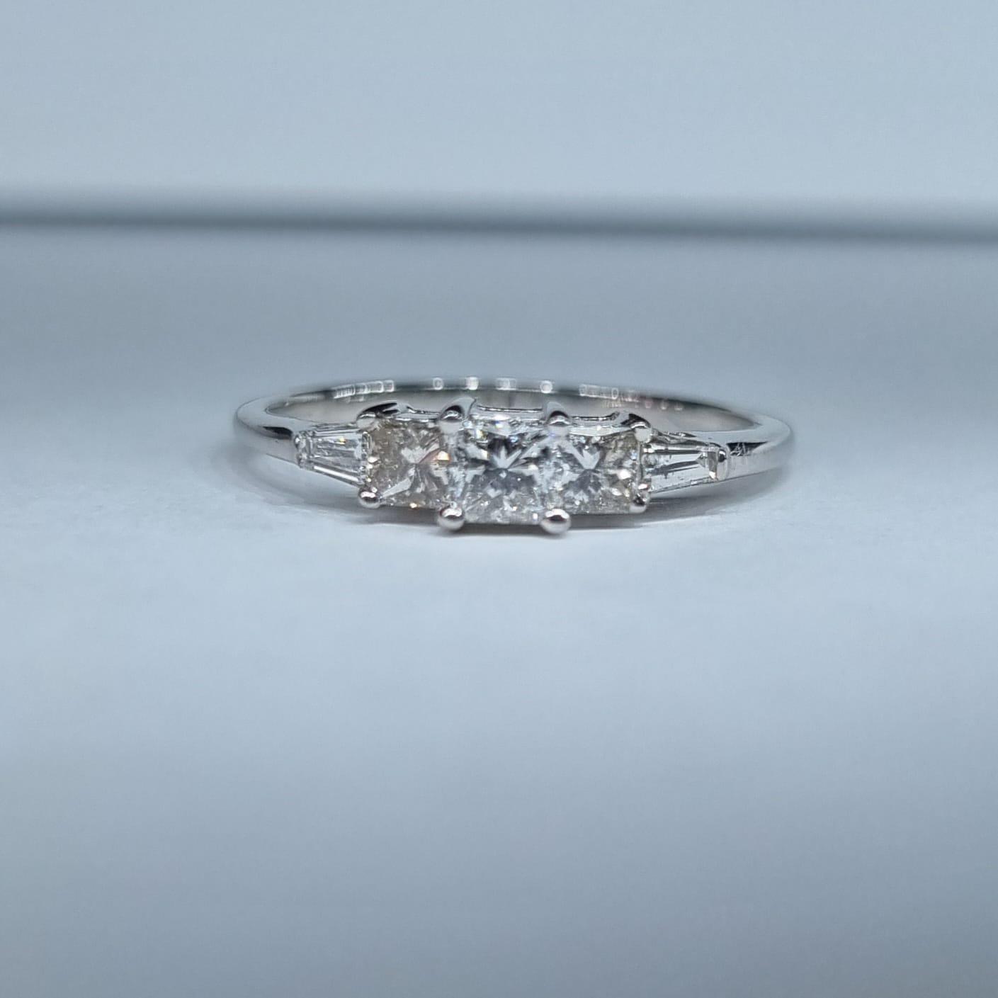 Platinum Ring Set with 3 Princess Cut Diamonds and 2 Baguette Cut Diamonds