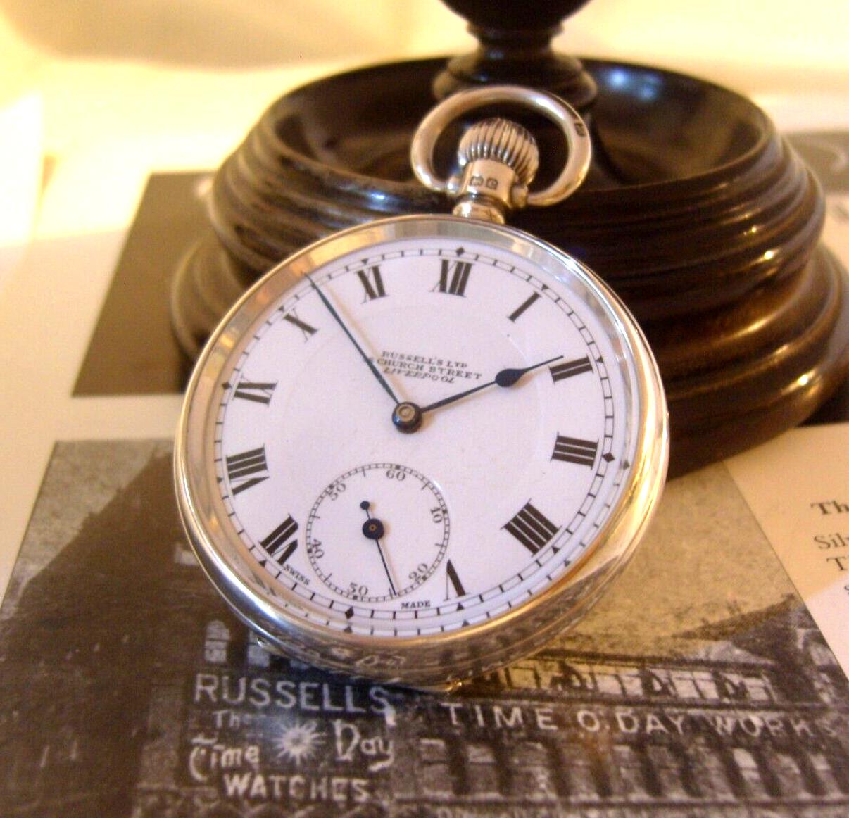 Pocket Watch 1927 Russell's Ltd Swiss 15 Jewel Silver 'time O Day' Case FWO