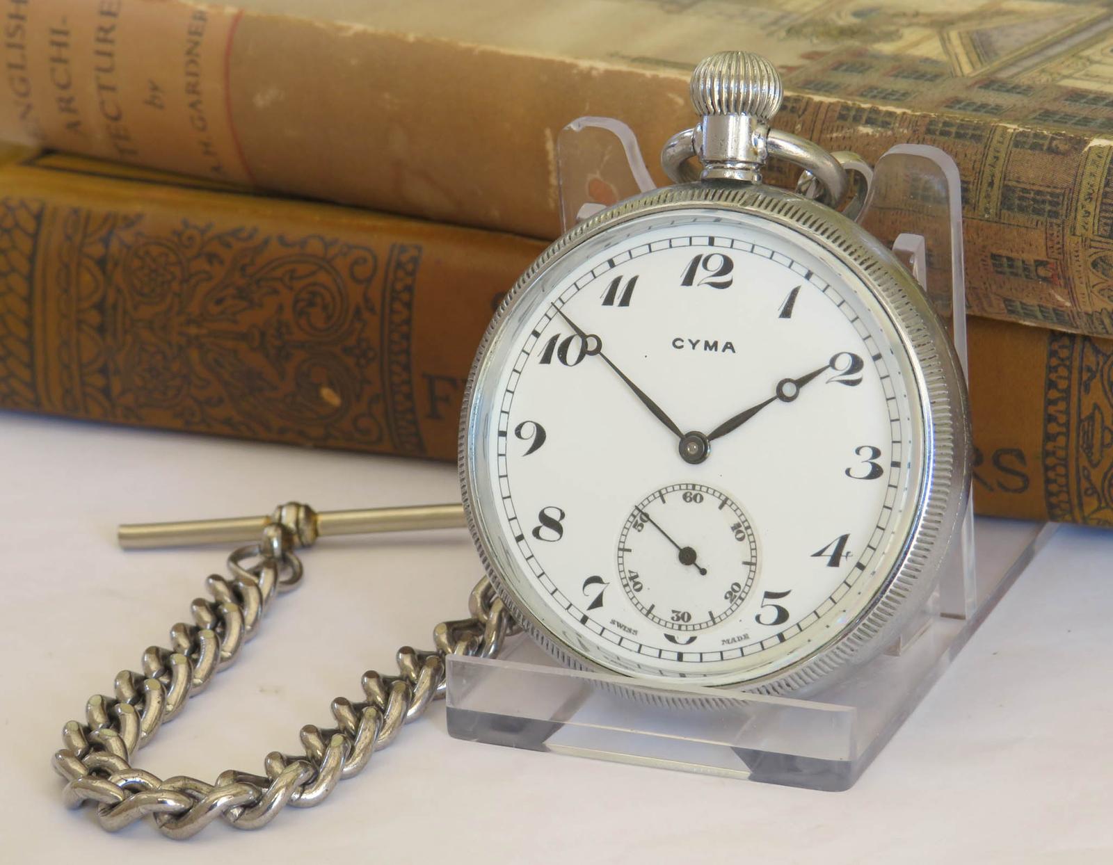 Pocket Watch: 1930s Cyma Pocket Watch & Chain