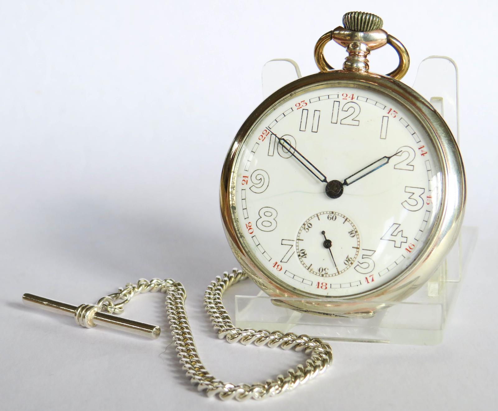 Pocket Watch: 1940s Silver Perfecta Pocket Watch & Chain