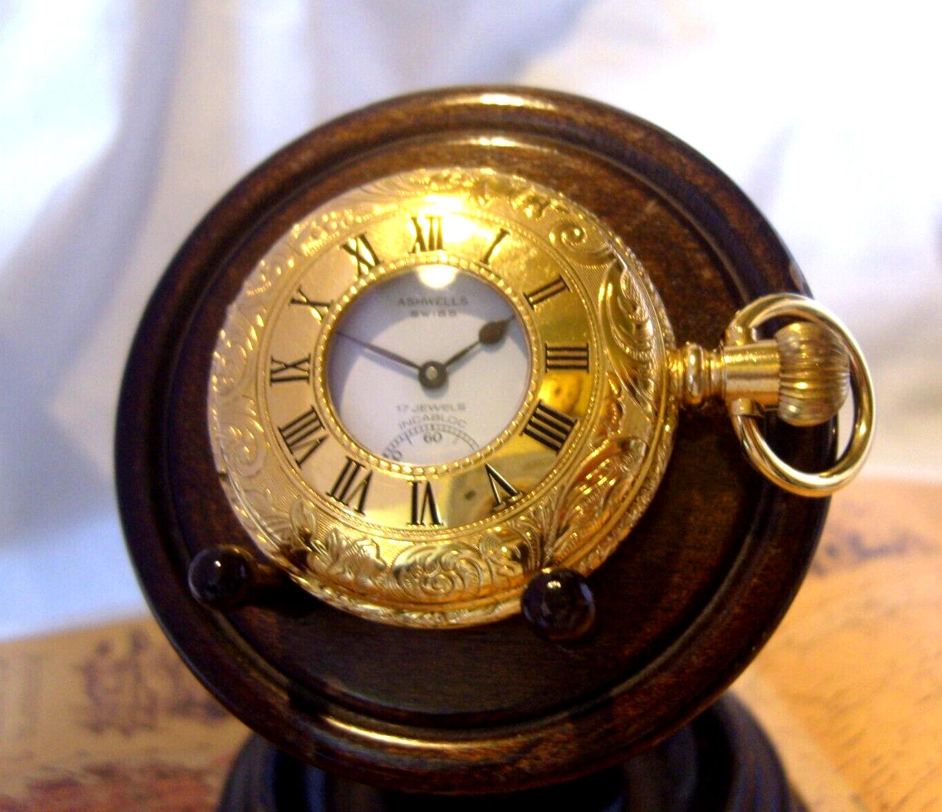 Pocket Watch 1970s Swiss Ashwells 17j 12ct Gold Plated Vintage Half Hunter