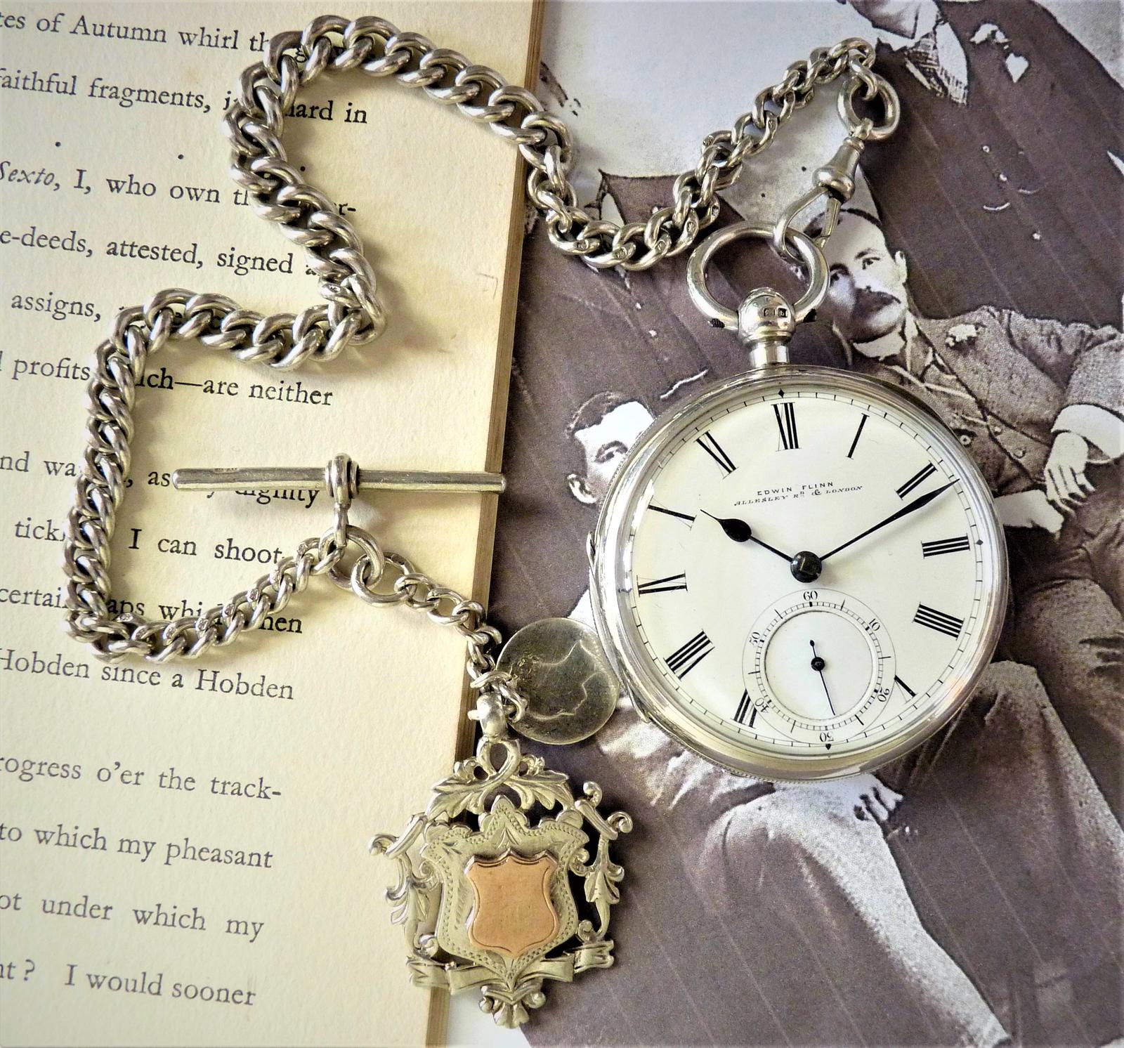 Pocket Watch: A 1901 Open-faced Silver Fusee Pocket Watch by E. Flinn of Coventry with Silver Chain & Fob (1 of 7)