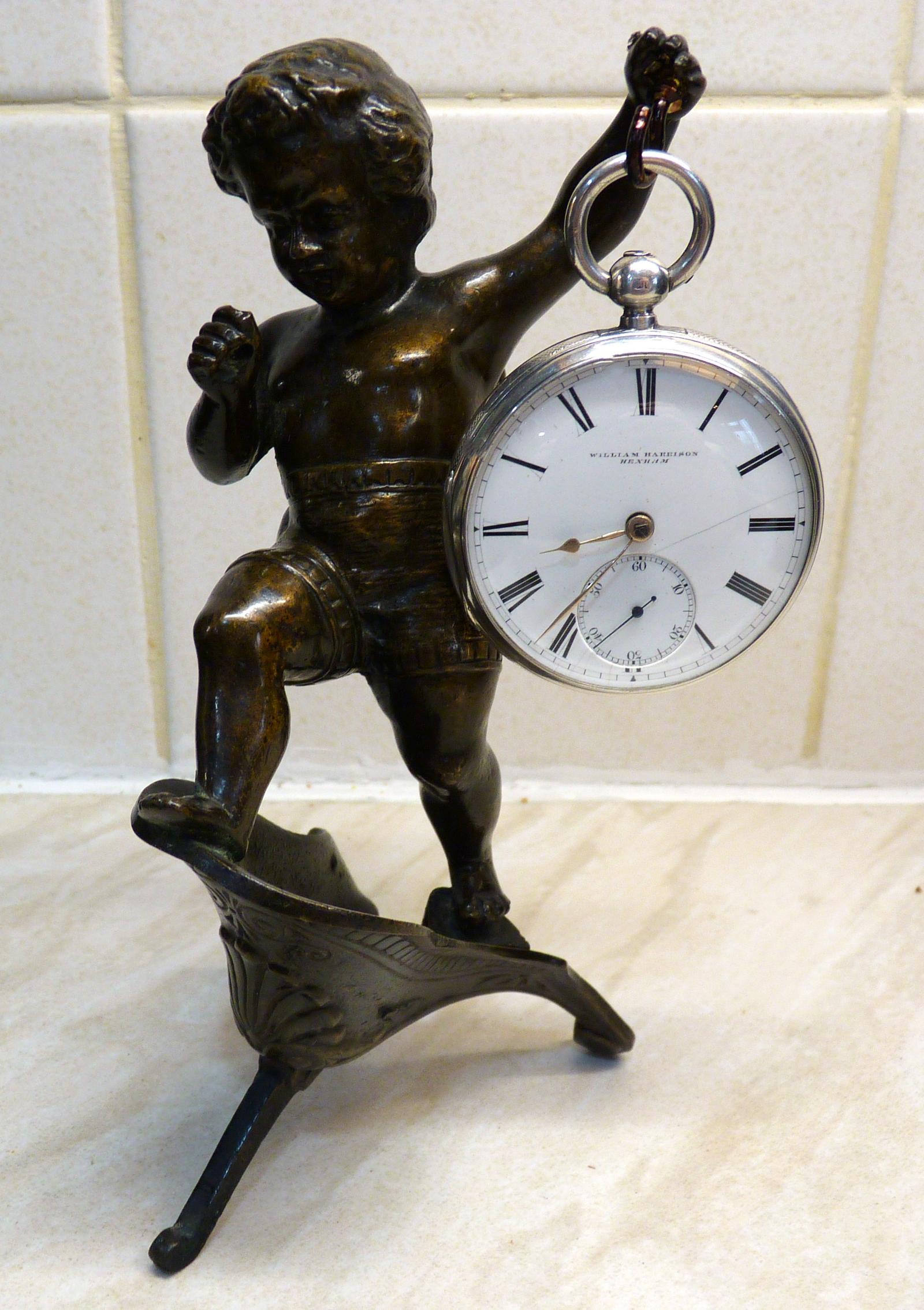 Pocket Watch Accessories: Solid Bronze Cherub on Chariot Base Pocket Watch Stand